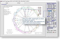 Most astrologers and students of astrology spend a lot of time looking at chart wheels. We often think of a chart wheel as something fixed and we can look at a chart wheel on the computer screen or we can print it out, and we have the same chart wheel. However, what if a chart wheel on the screen was interactive and flexible so you could click once to put Chiron in the wheel and click again to remove it? It would be nice if we could interact with the chart wheel so we could place an asteroid in the wheel to see where it is without having to place it in the wheel permanently. We might like to switch between the Mean Node and True Node, or between the ancient and modern formula for the Part of Fortune without having to make the selections, view the wheel, and then go back and customize the wheel again to set it back to the settings that you normally prefer. In Kepler you can do all of this! Browsing through the wheel styles is also fun because you see the actual chart wheel as you do this rather than a little thumbnail image of it. The Page Designer feature provides real drag-and-drop capability. If you are not familiar with computer lingo, that means you can visually move, add, and remove tables, aspect grids, etc. to a chart wheel. Even if you feel that you are not as good as the average child in your ability to use a computer, you will find that you can easily customize the chart wheel. For a more thorough introduction to selecting and customizing chart wheels in Sirius watch the 42-minute video. For even more information on customizing wheels, watch the 35-minute video on advanced customizing features. Also keep in mind that you do not need to watch these videos to understand how to select wheels and customize wheels. The procedure is intuitively obvious. The videos are available in case you want additional information and you will probably learn some nice "tricks" and features that you might otherwise overlook if you watch the videos. |