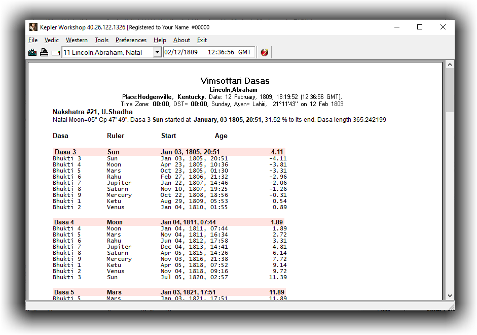 Kepler is a complete and comprehensive Vedic program. Kepler is not a western program with some Vedic features. The Vedic features are so comprehensive that some Vedic astrologers use Kepler for their work. Just a quick summary of some of the Vedic features is given below: