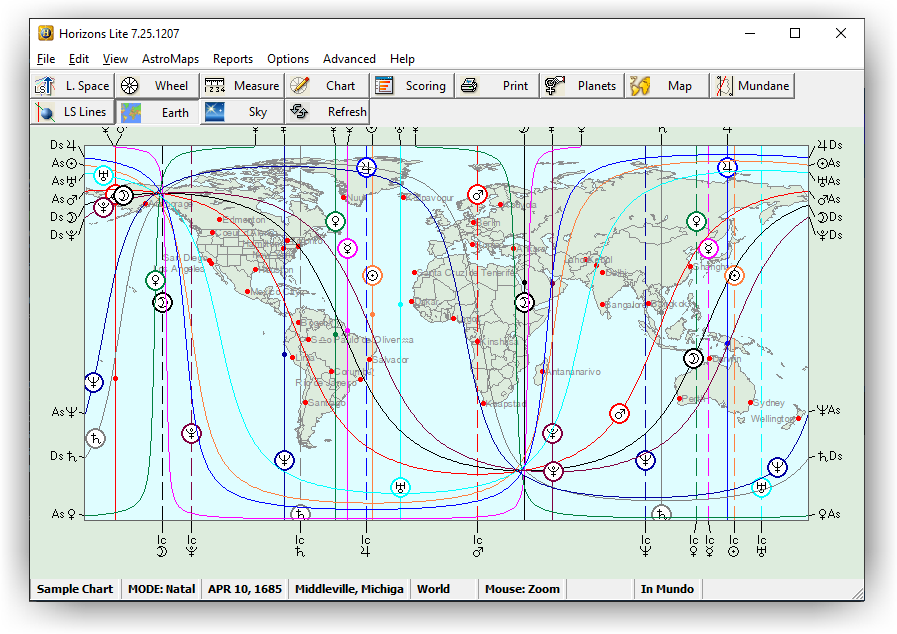 This is a streamlined or abridged, accessible version of the full Matrix Horizons program. Matrix Horizons uniquely blends cartography and astrology to help you evaluate planetary aspects and influences at any location on Earth. With Horizons Lite, you can explore planetary influences, chart wheels, local space, city comparisons, map themes, eclipse paths, parans, and more-offering powerful insights in a simplified and user-friendly format.