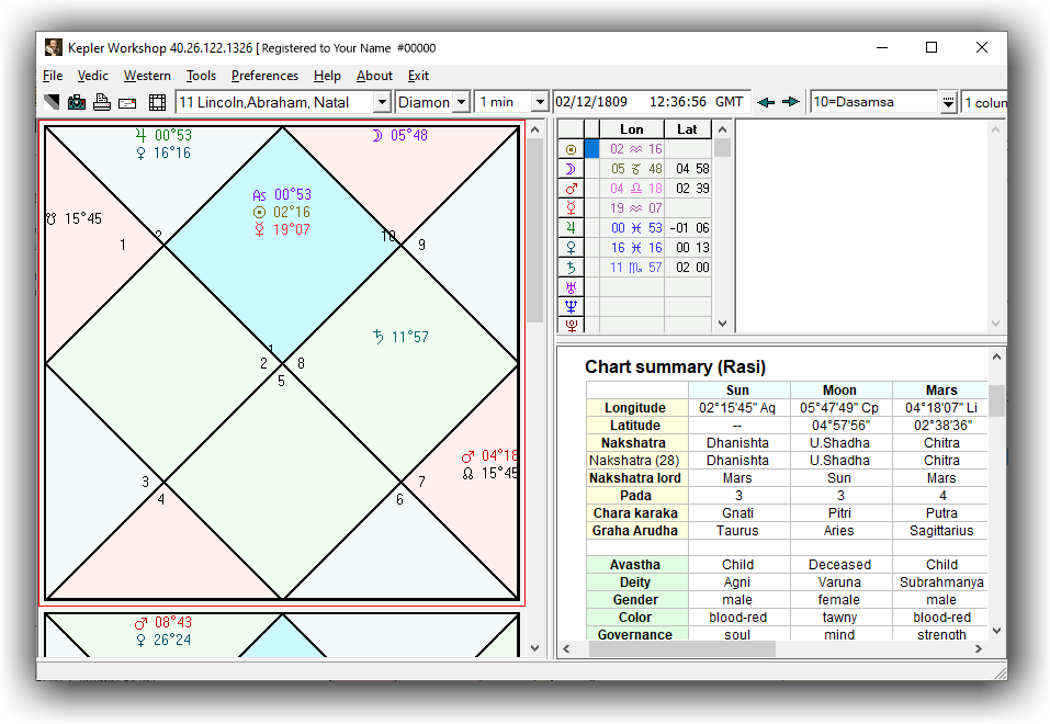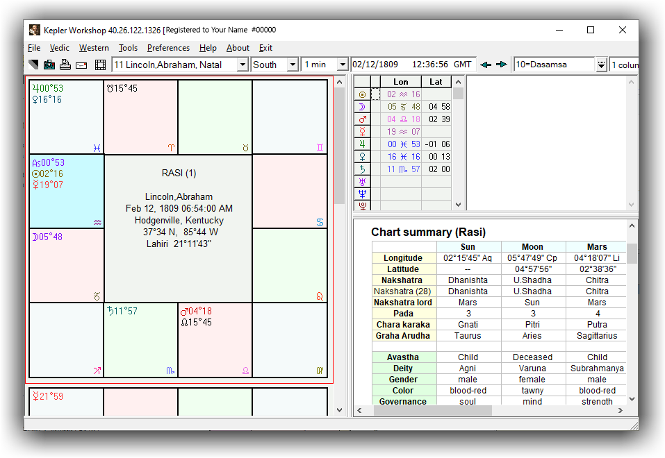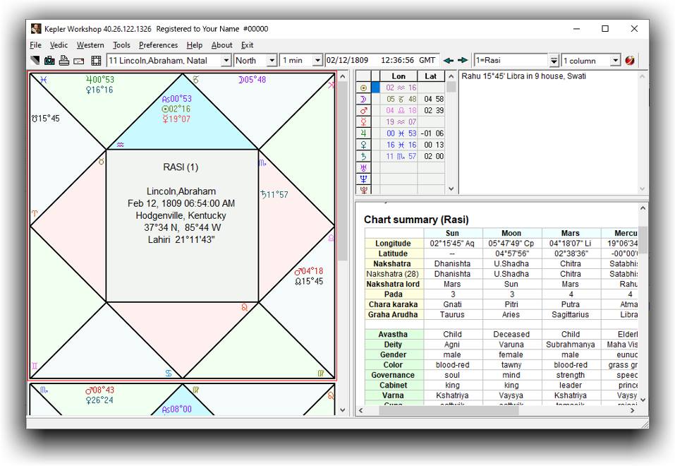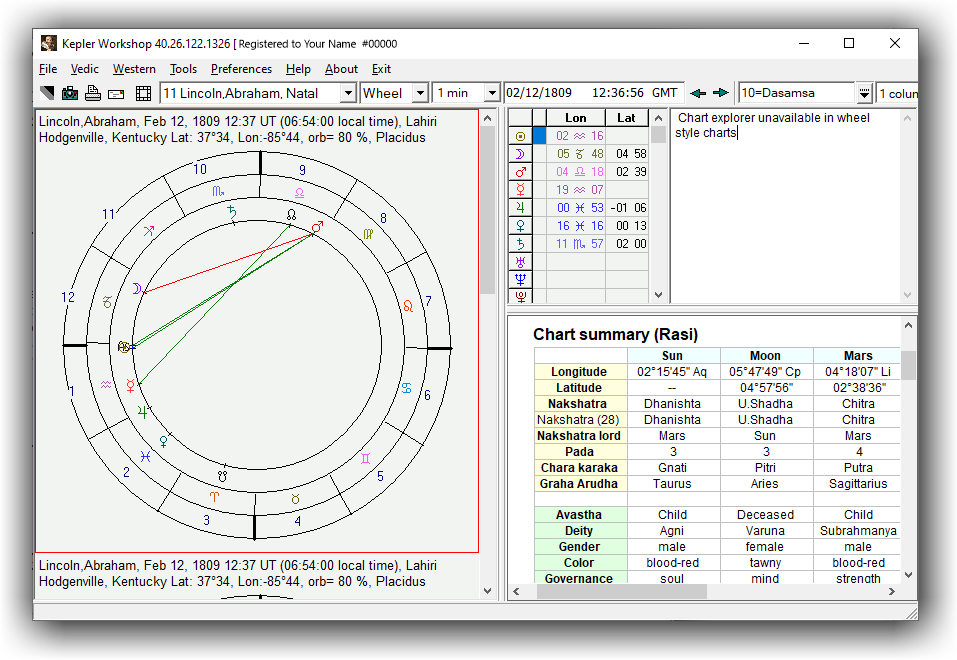 Kepler has very extensive and easy-to-use Vedic features. Shown below is a North Indian and a South India style wheel or chakra as it is sometimes called.